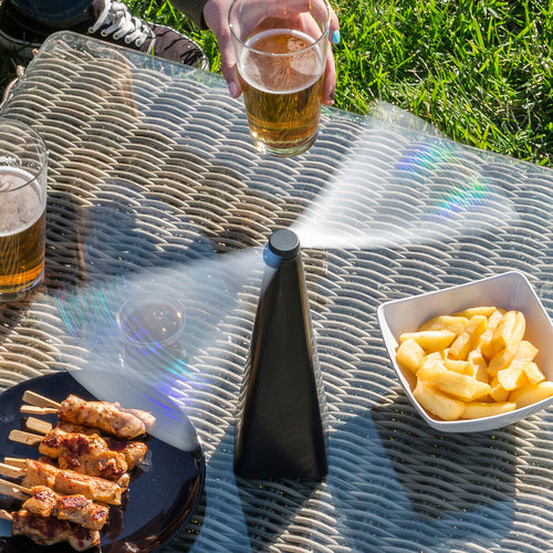 An original eco-friendly fly repeller which is ideal for repelling annoying flies simply, cleanly and effectively. It can be used both indoors and outdoors, perfectly blending into your décor with its modern and elegant design. One of its main advantages is that it is environmentally friendly and does not pollute or is not harmful to health as it does not contain chemical or toxic products. It is also silent so it does not cause any noise disturbance. It features flexible blades with reflective holographic tips which repel flies and other flying insects. This eco-friendly repeller is reusable, lightweight and portable, as it is battery operated (2 x AA, not included). It does not require cables or plugs, so it is very easy to use and take wherever you need it.